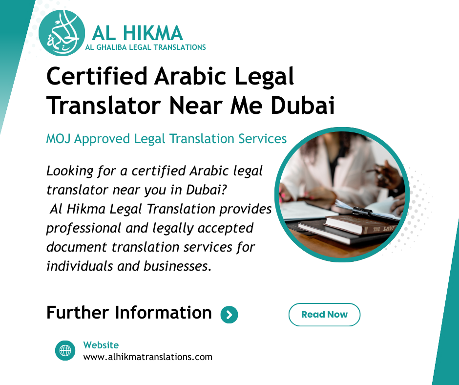 Finding a certified Arabic legal translator near me Dubai is essential when preparing documents for UAE authorities. Certified translators ensure that documents are accurately translated and legally accepted.