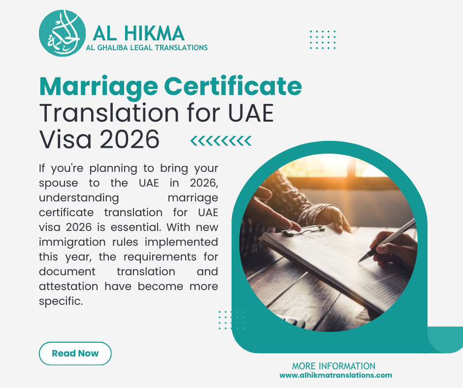 If you’re planning to bring your spouse to the UAE in 2026, understanding marriage certificate translation for UAE visa 2026 is essential. With new immigration rules implemented this year, the requirements for document translation and attestation have become more specific.